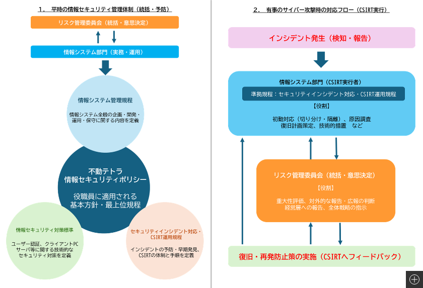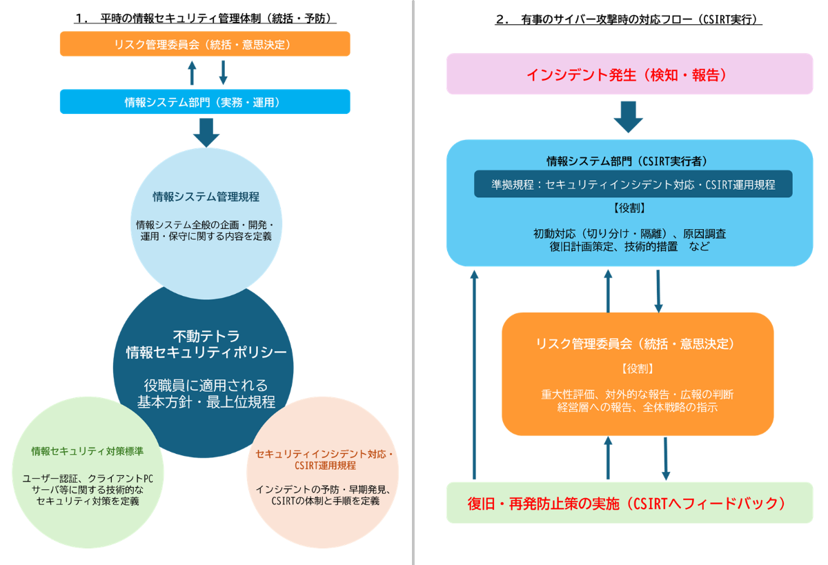 平時の体制と規程、および有事の際のサイバー攻撃時の対応フロー