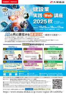 10月15日~17日に開催された株式会社大塚商会主催のwebセミナー「建設業実践Web講座2025秋」における基調講演で当社社員の小林純が講師として登壇しました。